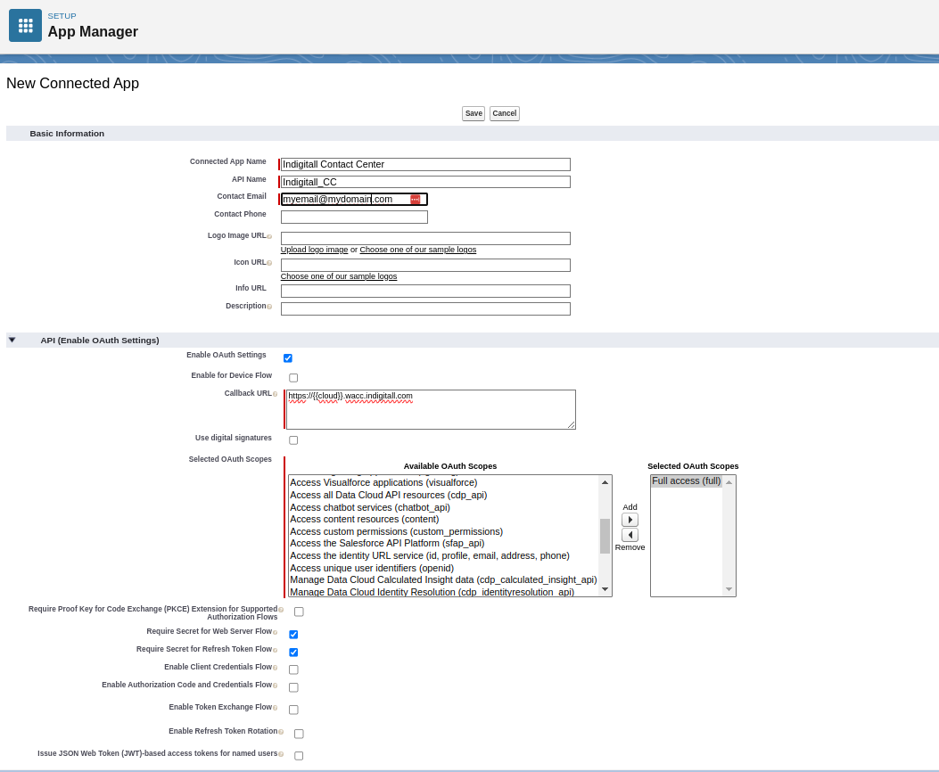 - Enable OAuth Settings should be checked